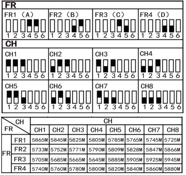 7. Channel option: slide switches 123456 to choose the designated frequency among the 32CH.