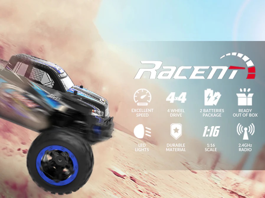 【4 WHEEL DRIVE RC CAR】- This Cross-Country rc truck 4x4 designed with 4 weel-drive system allows the truck to conquer diferent awful environment easily and provide you the realistic racing and off-road game experience. Heavy duty tires and wheels to provide high speed and stable running performance.