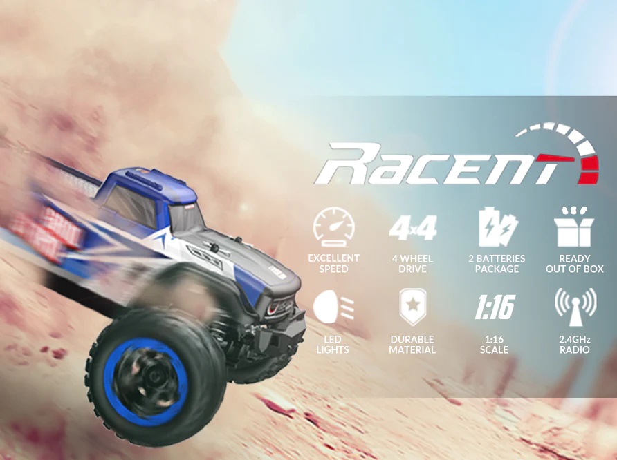 Main Page » RC Cars » RACENT Monster Truck SandStorm 4WD 1/16 785-6 - Brushed / Blue