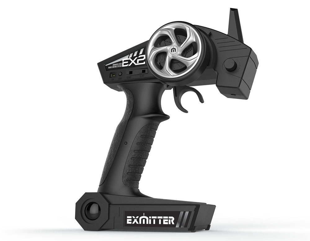 EX2 with 3-channel ESR301 receiver from Volantex RC is an advanced pistol radio for both the shredder and the demanding user. The device has an integrated 2.4GHz antenna, one model memory and is very intuitive to use. Its range is 300m. There is a 7: 3 and 5: 5 gas regulator, reversible for gas and steering.