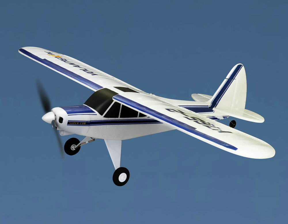 The Super Cub 750mm Sport Park Flyer is the ideal beginner's choice when learning to fly with an instructor. It's small size makes it easy to transport , but it's power makes it a joy to fly. The top wing design of the Super Cub provides gentle handling characteristics with a flowing glide. Increasing the throw on the control surfaces really opens the this docile plane up allowing for tight angle turns, loops, and other aerobatic tricks!
